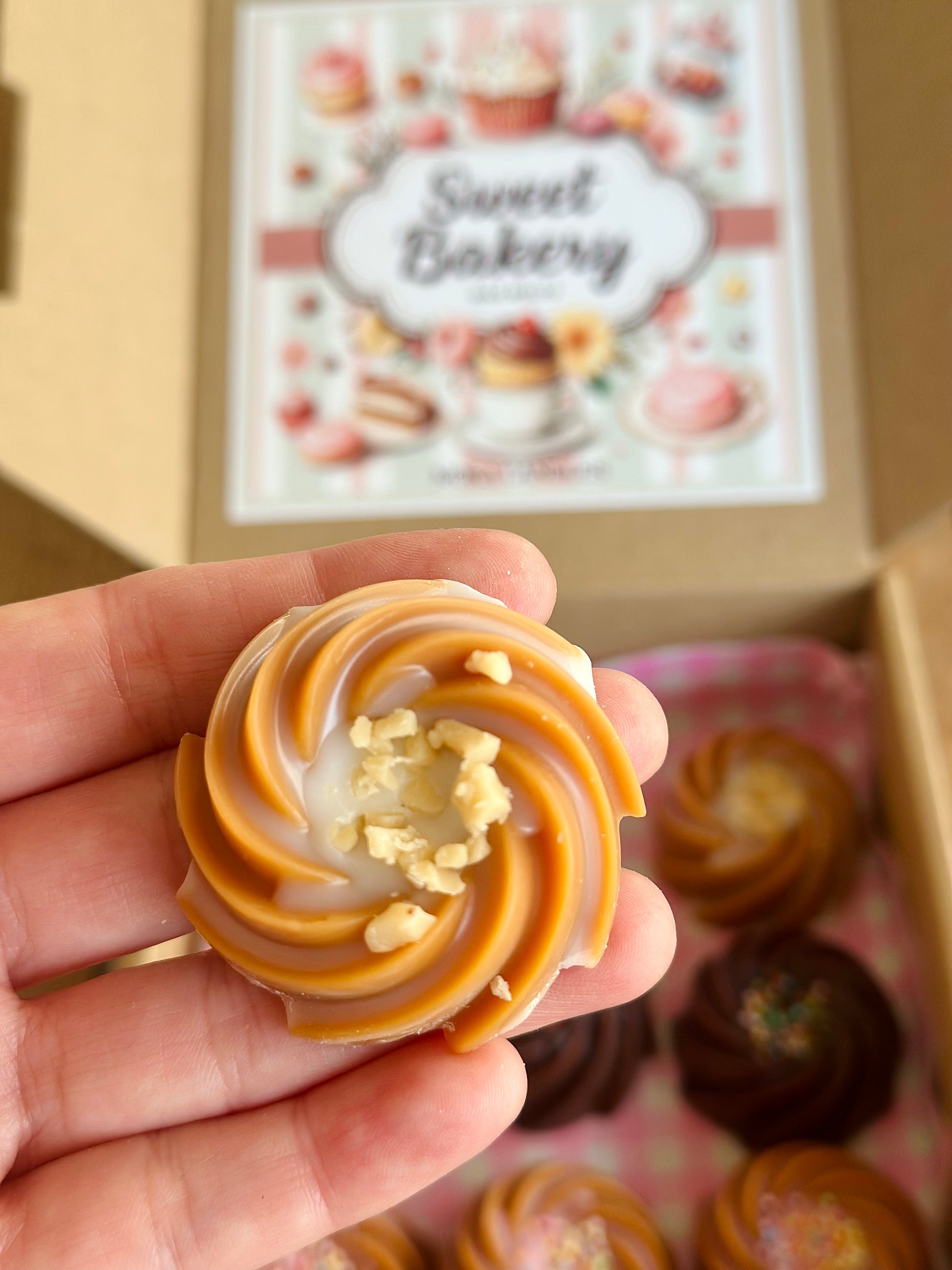 Το Sweet Bakery Box περιέχει 12 mini swirl cakes χειροποίητα από 100% φυσικό κερί σόγιας, σχεδιασμένα να θυμίζουν μικρά, αφράτα γλυκά φούρνου που μοσχοβολούν φρεσκοψημένη απόλαυση!